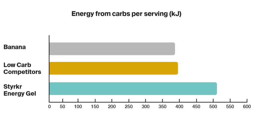 Styrkr drink mixes and gels contain two transportable carbohydrates – maltodextrin and fructose – at a ratio of 1:0.8 to improve the exogenous carbohydrate oxidation rate and cause the least amount of gut discomfort compared to ratios of 1:1.25 and 2:1